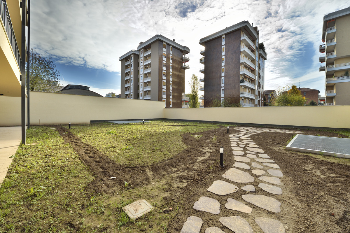 Esternamente la Residenza si presenta con un ampio giardino sia sul fronte che sul retro, in cui verrà riservata un’area dedicata ai bambini.